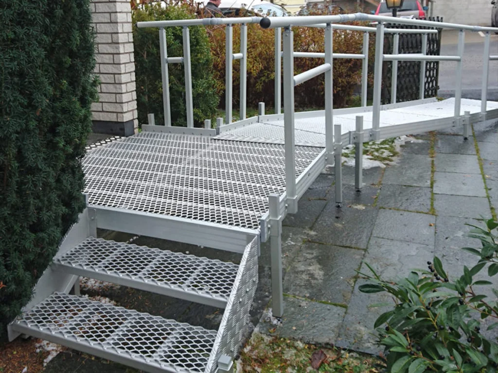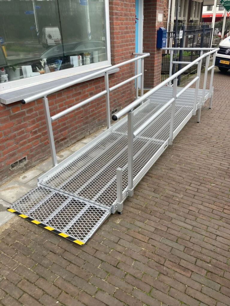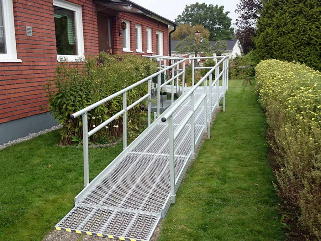 Om grotere hoogteverschillen te overbruggen, bieden modulaire hellingbanen uitkomst. Met de elementen kan voor vrijwel iedere situatie een passende hellingbaan worden gerealiseerd in combinatie met een veilige leuning.